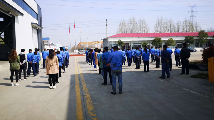4月4號(hào)10.00整我們福瑞德機(jī)械員工自覺的集合,表情莊嚴(yán)肅立,集體默哀三分鐘。伴隨著準(zhǔn)時(shí)想起防空警報(bào),我們?nèi)w員工送去了對逝者的思念,3分鐘讓我們思考太多太多我們福瑞德全體員工放下手中的工作,集體列隊(duì),希望他們一路走好。