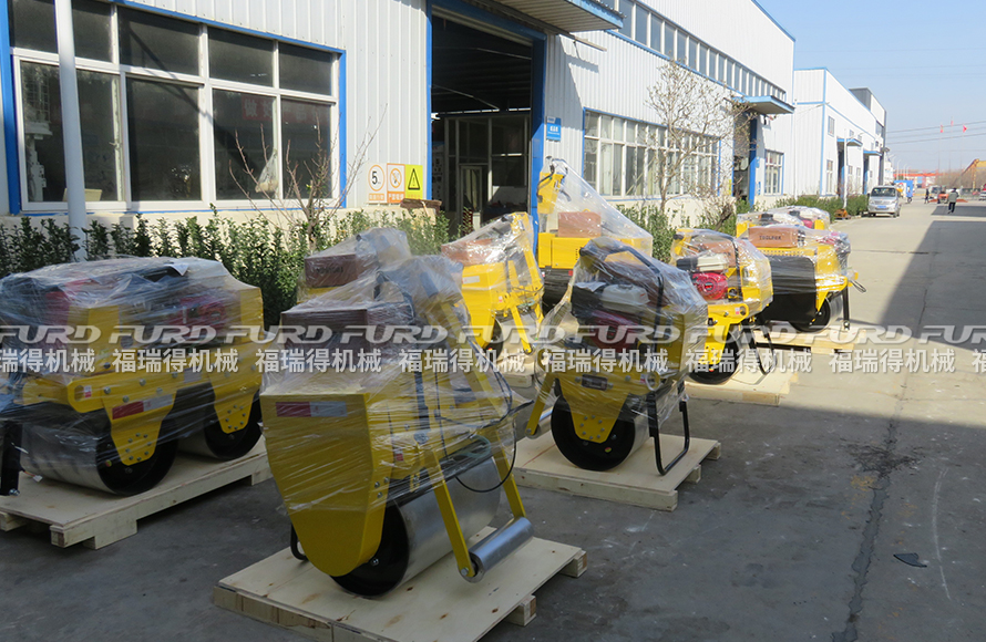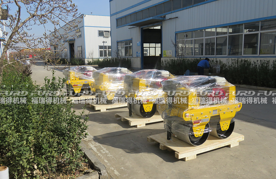 3月4日,福瑞得13臺(tái)小型手扶壓路機(jī)(8臺(tái)手扶雙輪,5臺(tái)手扶單輪)打包裝箱出口印度 。