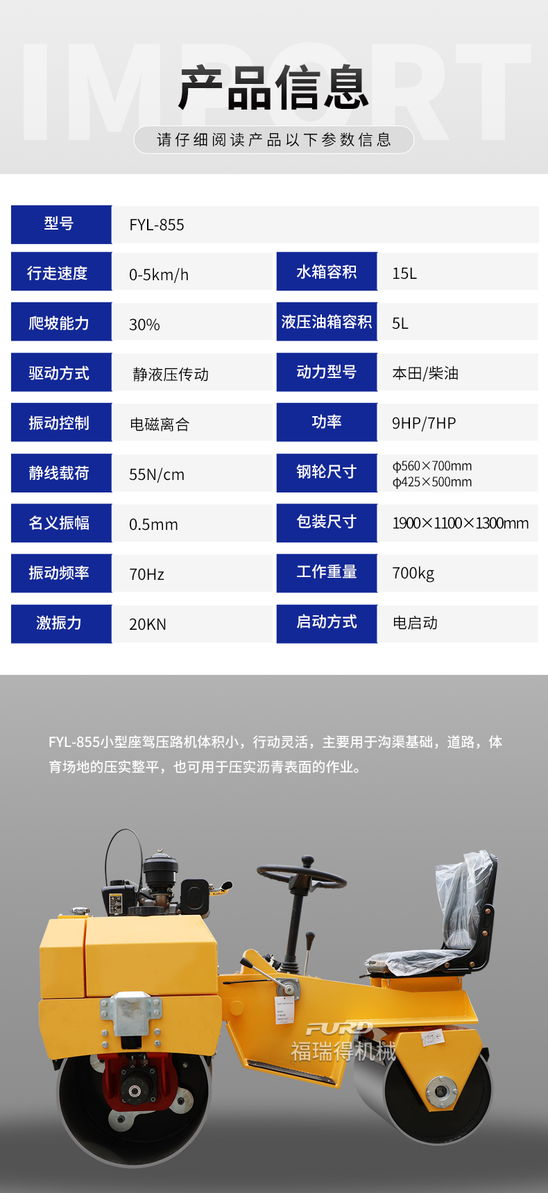 主要用于溝渠基礎,道路,體育場地的壓實整平,也可用于壓實瀝青表面的作業(yè)。