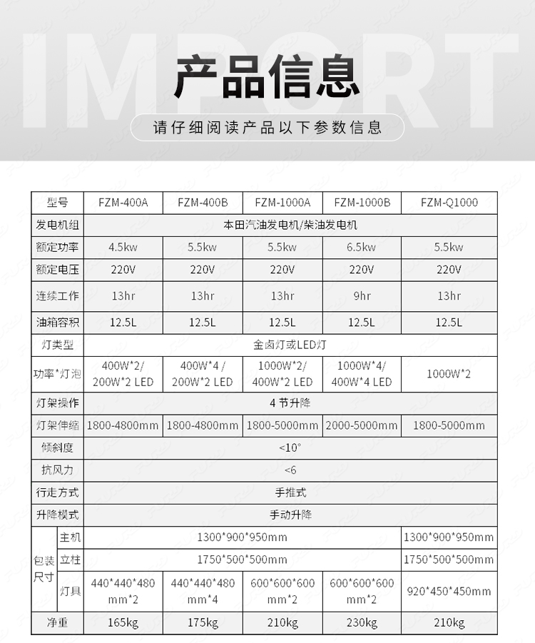 FZM-400A 5米手推移動(dòng)照明燈車