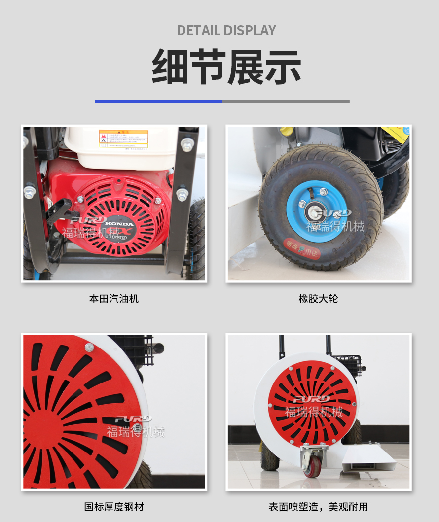 用于水泥、瀝青路面的清掃、清潔。 1.本田汽油動力,性能穩(wěn)定; 2.動力平衡極好的風(fēng)葉,保證整體的穩(wěn)定性; 3.超大風(fēng)量,性能優(yōu)越。