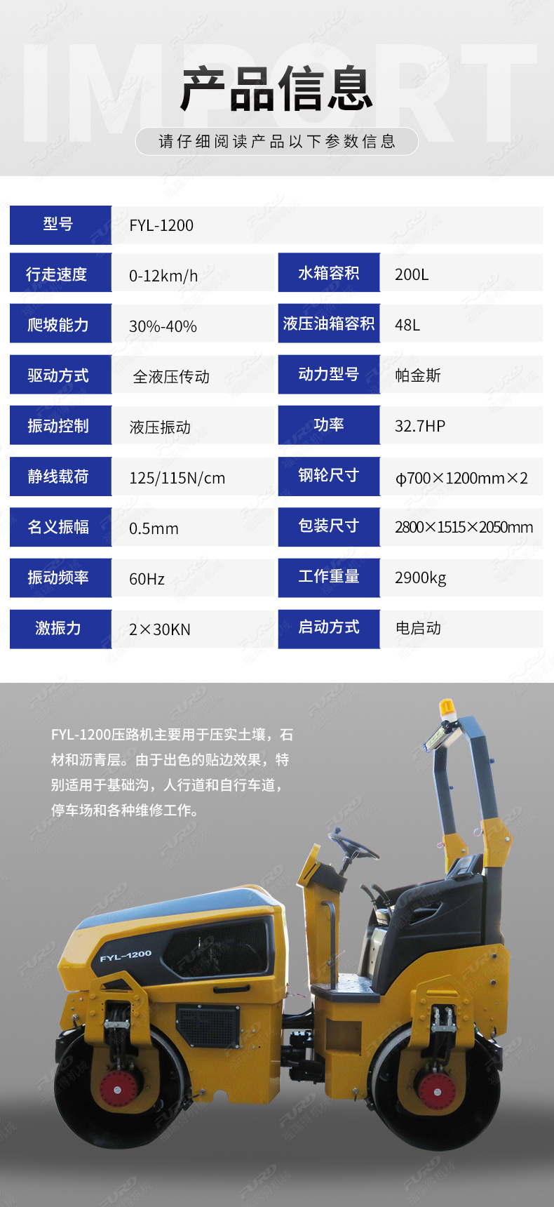 FYL-1200 新款3噸全液壓振動(dòng)座駕壓路機(jī)