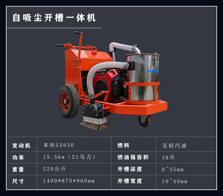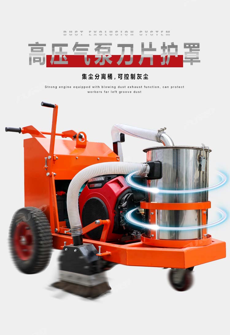 混凝土路面開槽吸塵一體機(jī)集開槽、吸塵為一體,解決了傳統(tǒng)開槽機(jī)工作產(chǎn)生灰塵的問題